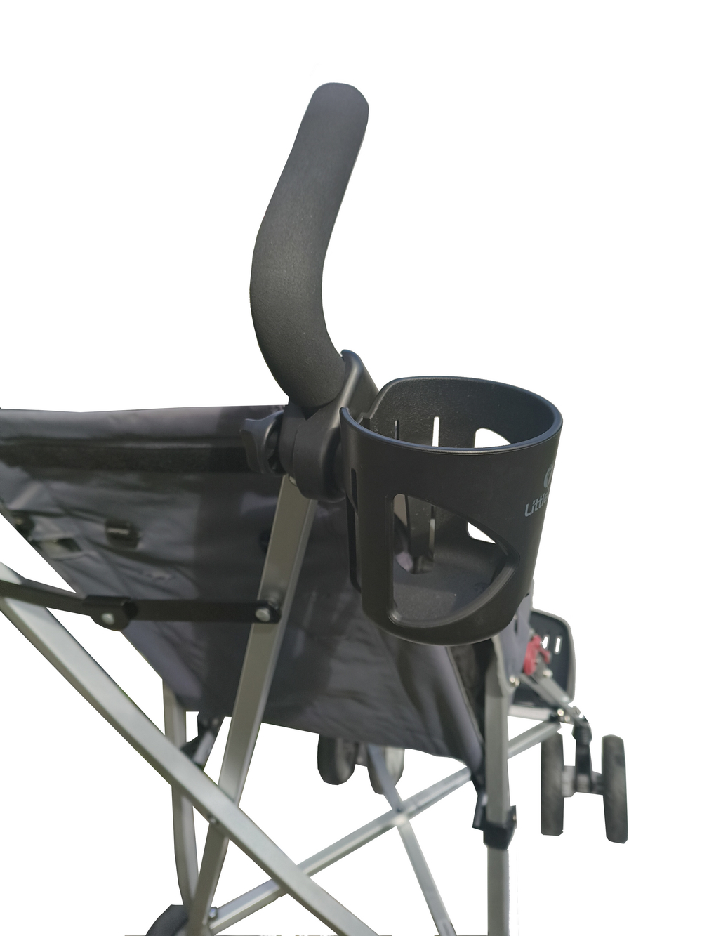 Cup Holder for the carer pushing the buggy. Simple to fit, clamps securely onto the Excel Elise frame. Mount at the base of the handle to hold a drink for the carer, the pushchair can be folded down with this attached. The Cup Holder can be fitted at the same time as the Sun Hood, to do this - attach the Sun Hood first and then attach the Cup Holder afterwards. Also available in Grey Compatibility - this product can be used with the DoBuggy, Maclaren Major Elite, Mobiquip (MQ XL) and Excel Elise Neo pushchairs.